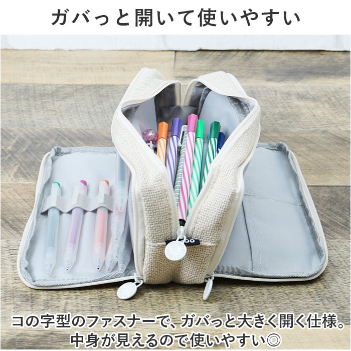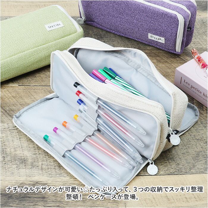 ・ナチュラルデザインが可愛い☆たっぷり入って、3つの収納でスッキリ整理整頓! ペンケースが登場。