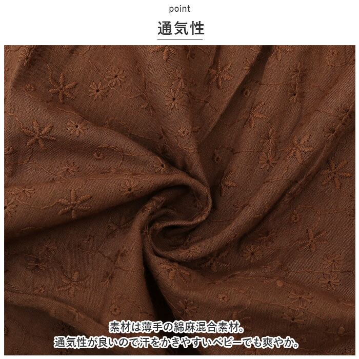 ・素材は薄手の綿麻混合素材。通気性が良いので汗をかきやすいベビーでも爽やか。