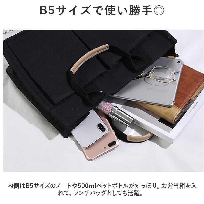 ・内側はB5サイズのノートや500mlペットボトルがすっぽり。お弁当箱を入れて、ランチバッグとしても活躍。