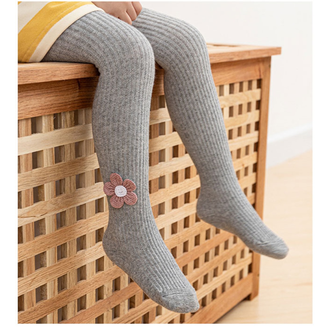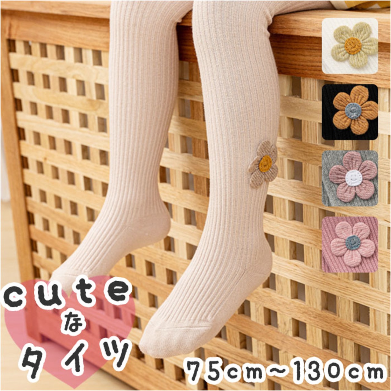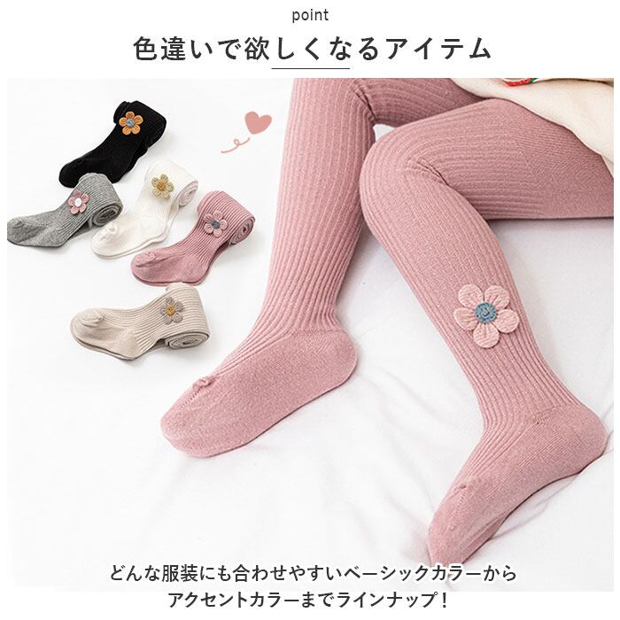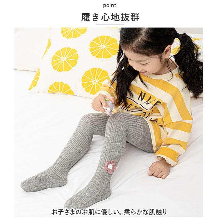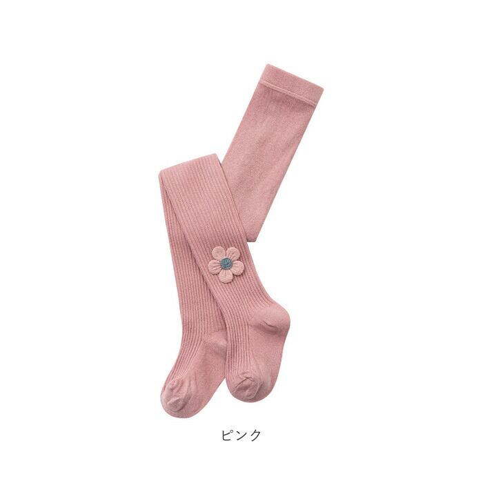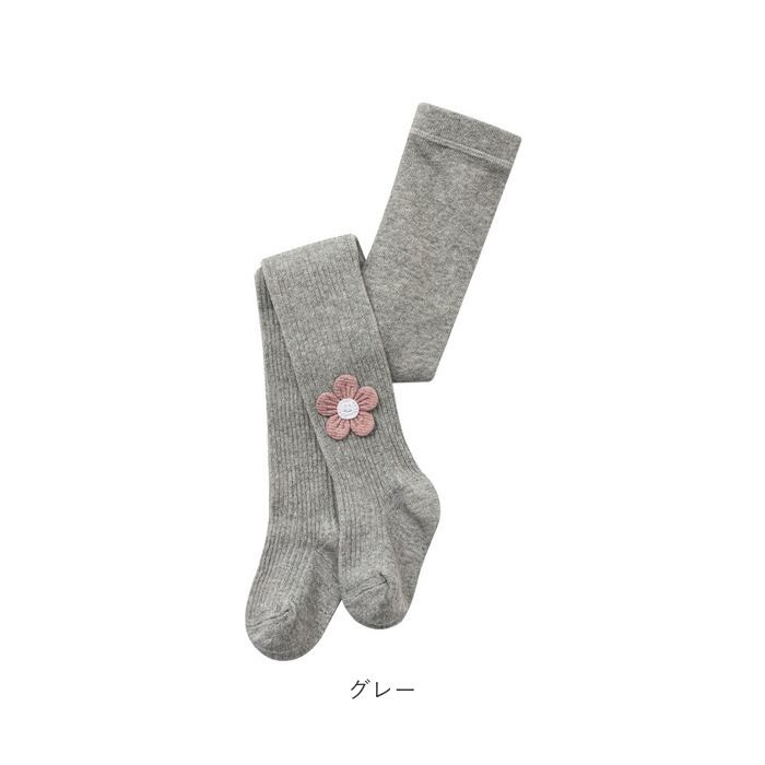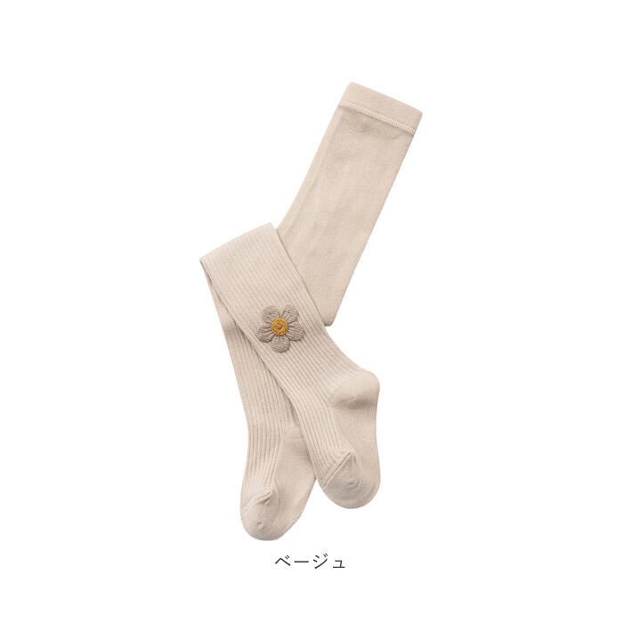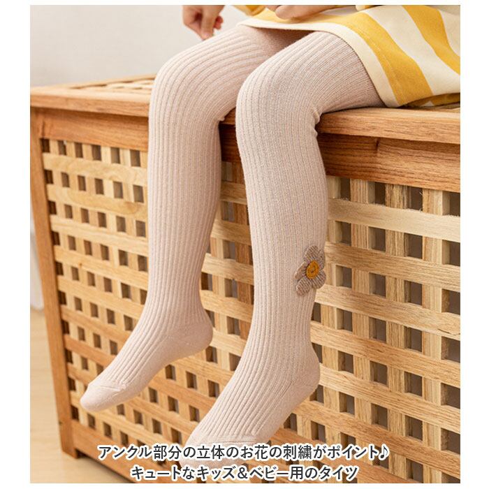 ・アンクル部分の立体のお花の刺繍がポイント♪キュートなキッズ&ベビー用のタイツ。