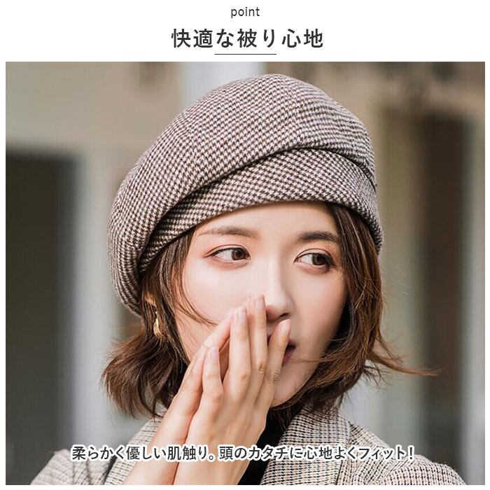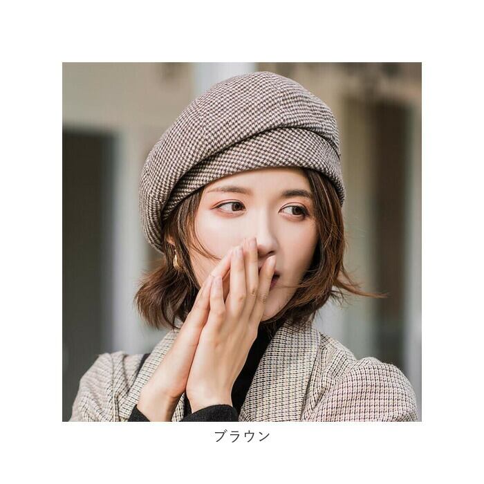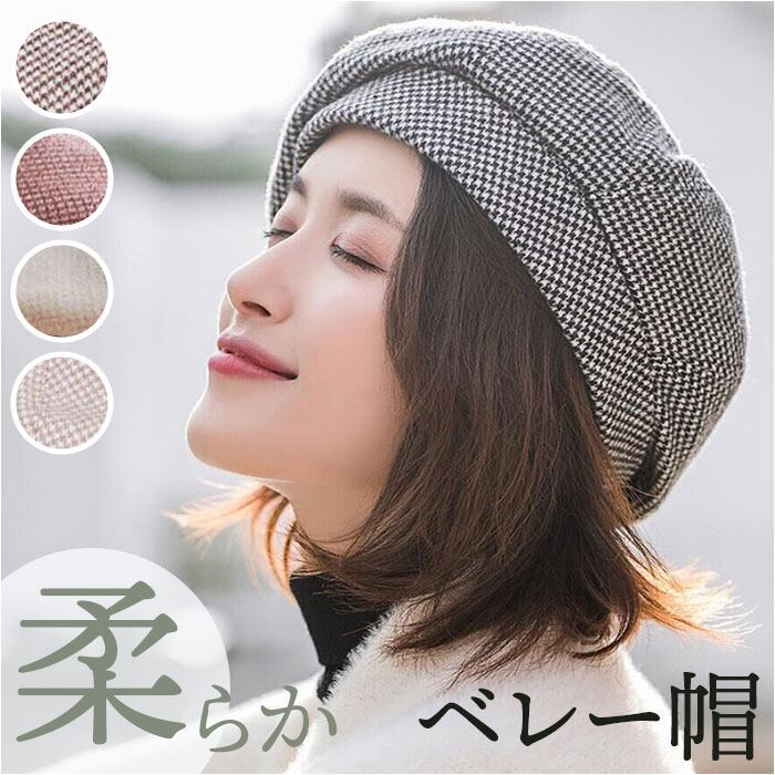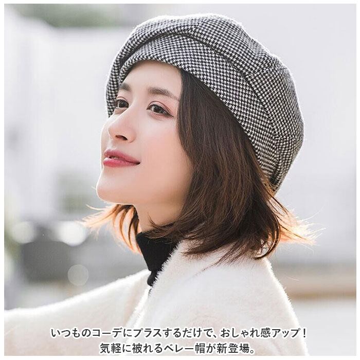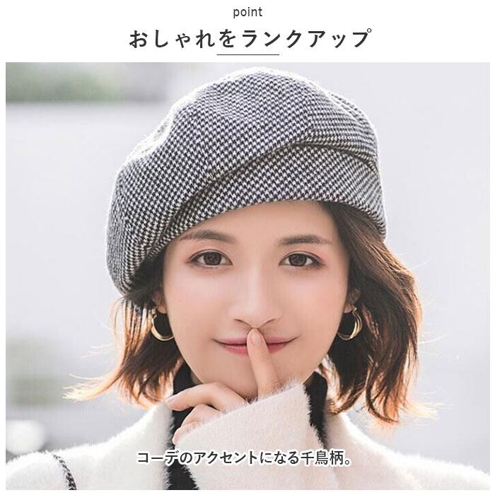 ベレー帽 レディース 通販 帽子 ぼうし ベレー ハット 秋 冬 防寒 千鳥格子 暖かい あったかい 通勤 通学 お出かけ ふっくら チェック柄 上品 シンプル おしゃれ オシャレ かわいい カワイイ 可愛い