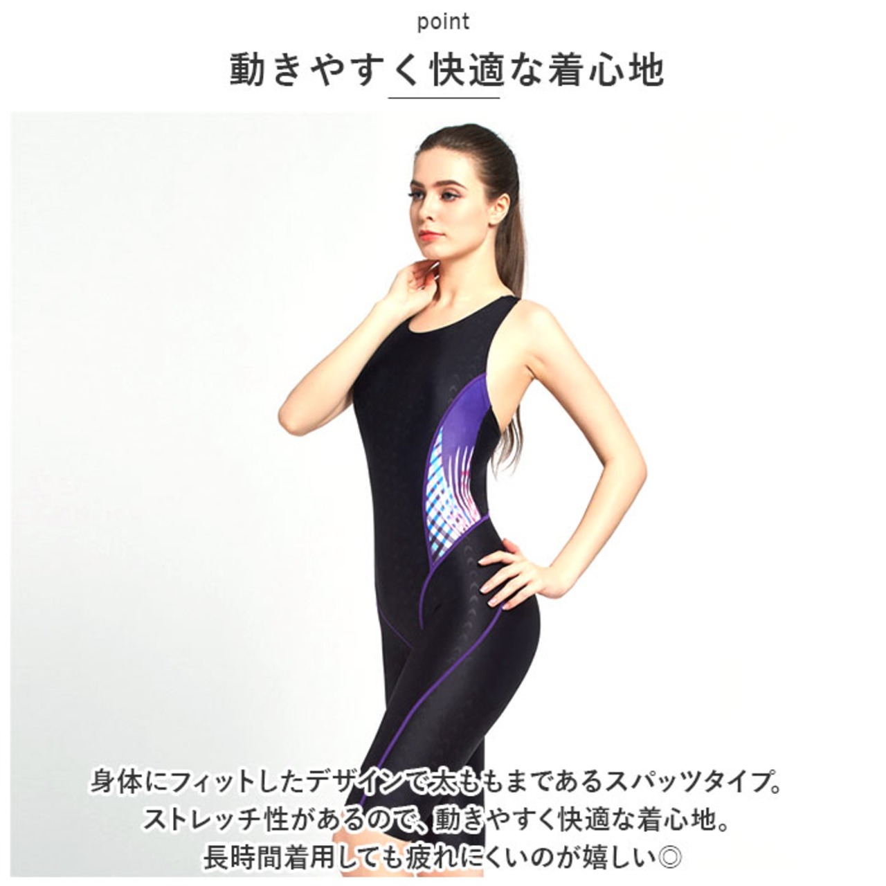 ・スタイリッシュなデザインで、フィットネス用としても競泳用としても使用可能。