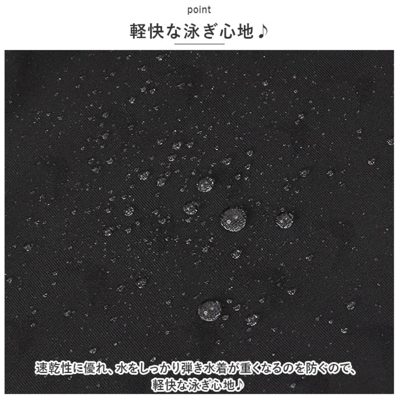 ・速乾性に優れ、水をしっかり弾き水着が重くなるのを防ぐので、軽快な泳ぎ心地♪