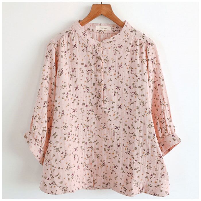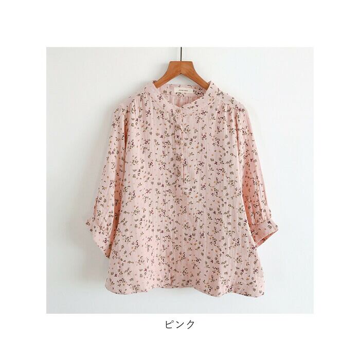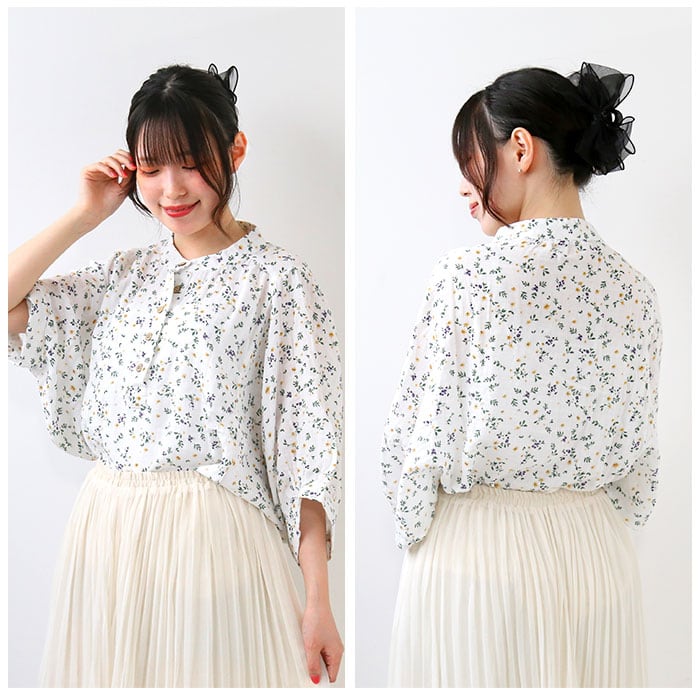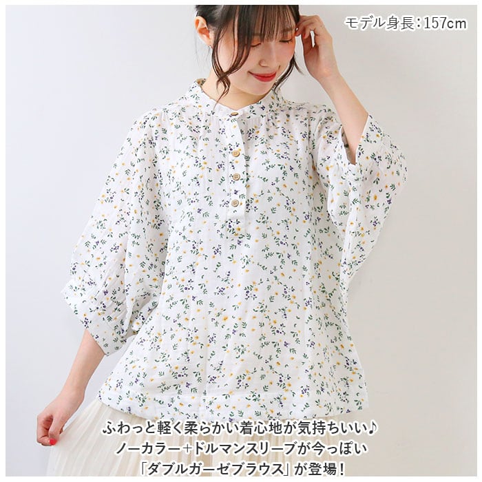 ・ふわっと軽く柔らかい着心地が気持ちいい♪ノーカラー+ドルマンスリーブが今っぽい「ダブルガーゼブラウス」が登場!
