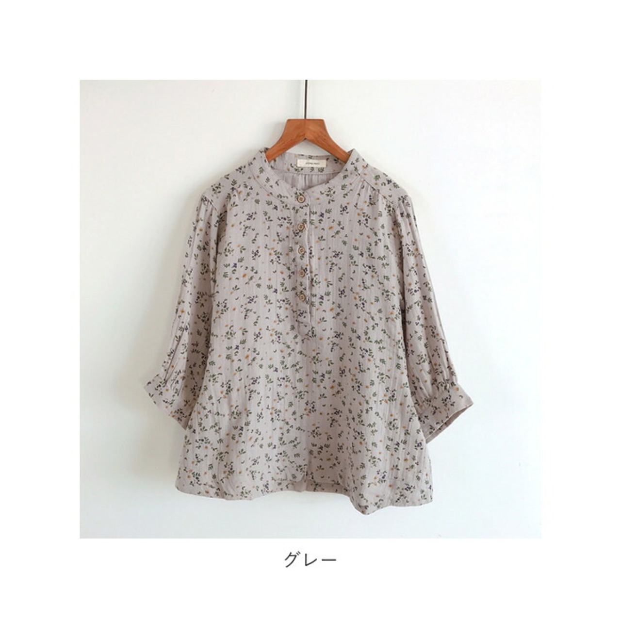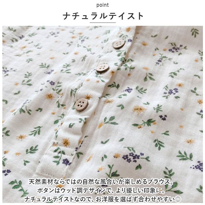 ・天然素材ならではの自然な風合いが楽しめるブラウス。ボタンはウッド調デザインで、より優しい印象に。ナチュラルテイストなので、お洋服を選ばず合わせやすい◎