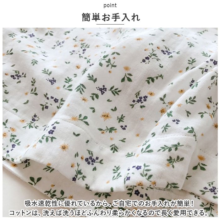 ・吸水速乾性に優れているから、ご自宅でのお手入れが簡単!コットンは、洗えば洗うほどふんわり柔らかくなるので長く愛用できる。