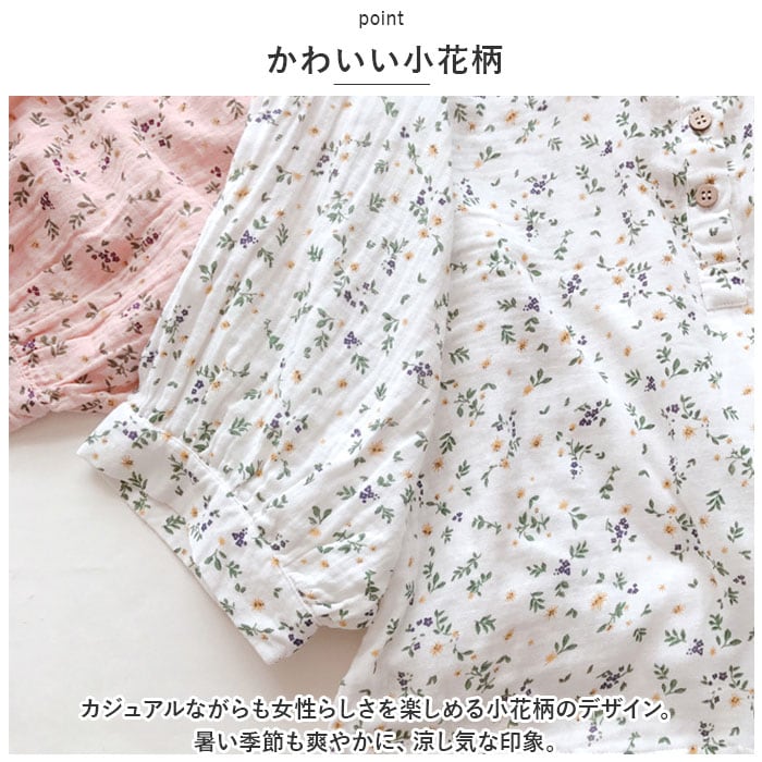 ・カジュアルながらも女性らしさを楽しめる小花柄のデザイン。暑い季節も爽やかに、涼し気な印象。