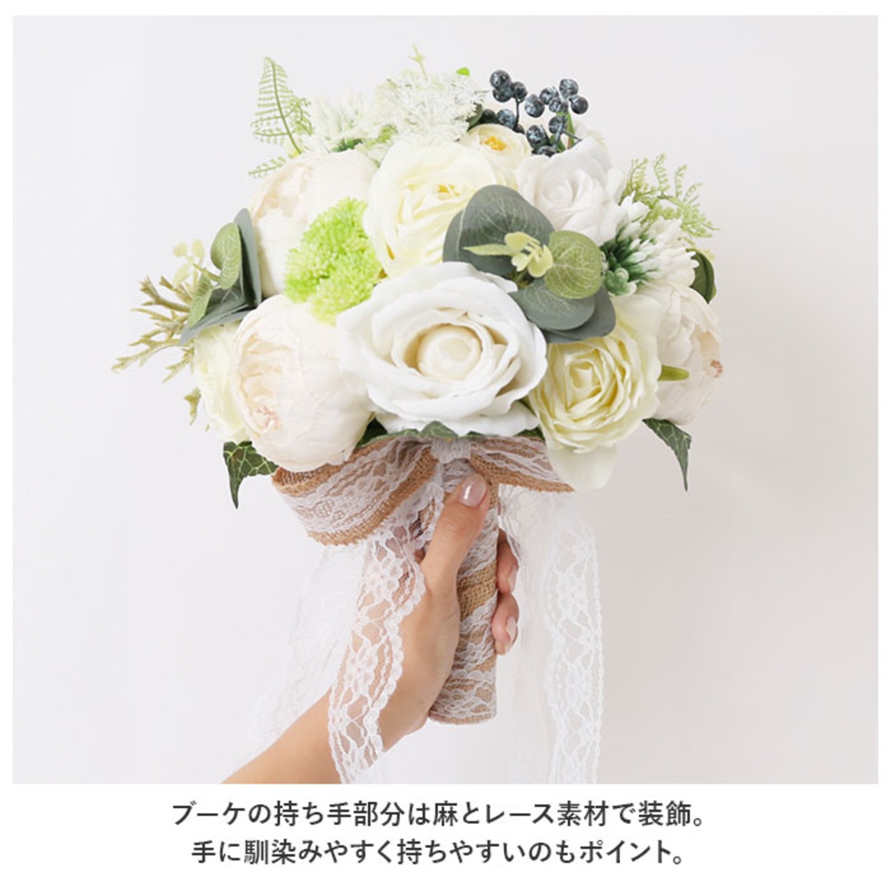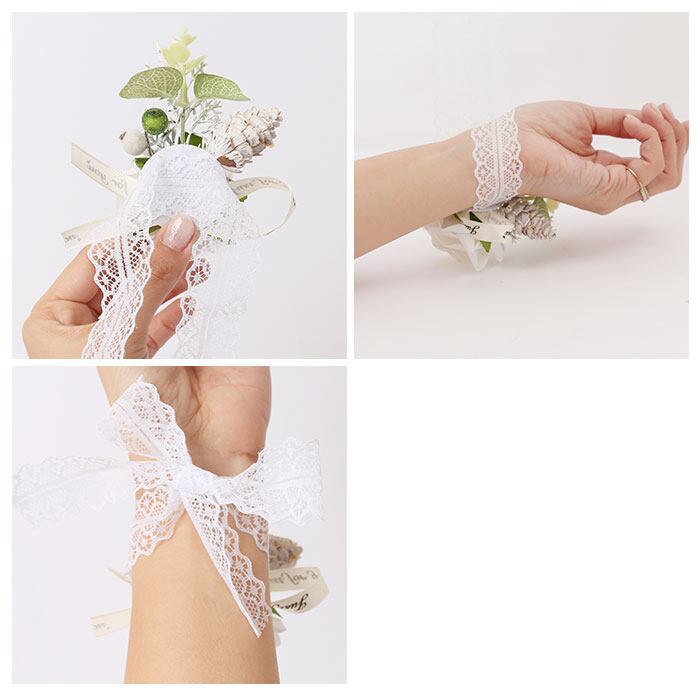 ・リストブーケはレース紐仕様。手首にも可愛さをプラス♪
