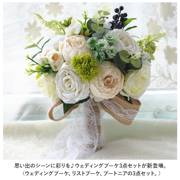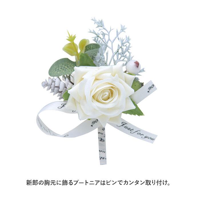 ウェディングブーケ 通販 ブートニア セット ブーケ 造花 ウェディング ブライダルブーケ ラウンドブーケ 花束 結婚式 挙式 アレンジメント コサージュ リストブーケ 新婦 花嫁 白 リボン 新郎 花婿 シンプル