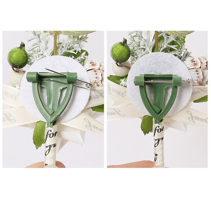 ・新郎の胸元に飾るブートニアはピンでカンタン取り付け。