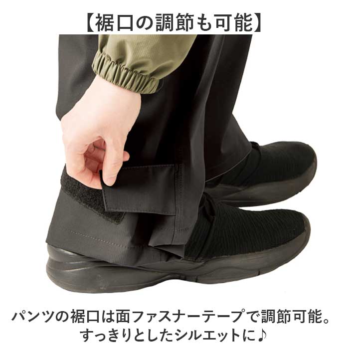 ・パンツの裾口は面ファスナーテープで調節可能。すっきりとしたシルエットに♪