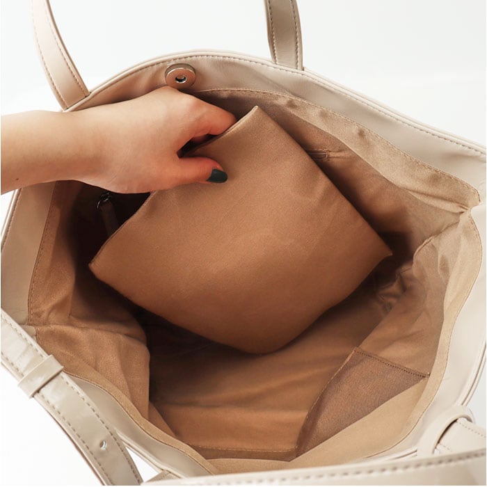 ・内側に3つのポケットを配置。細々とした物も整頓しやすく、バッグの中で探す手間が不要。