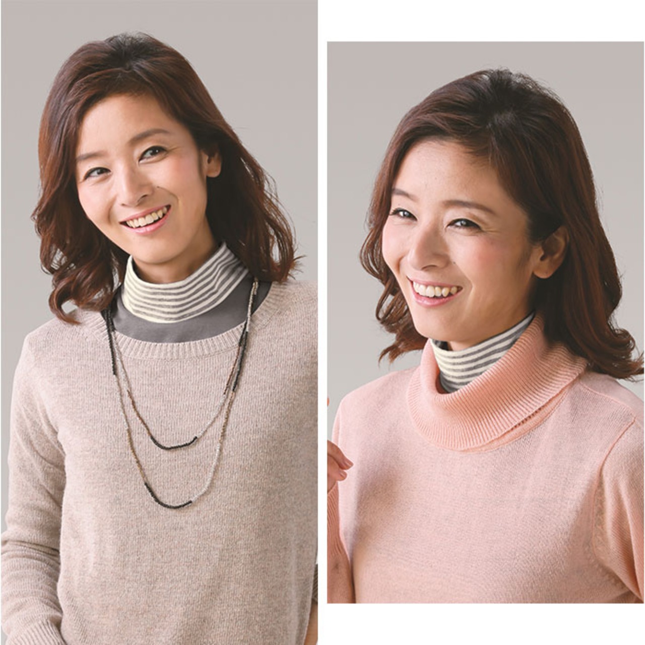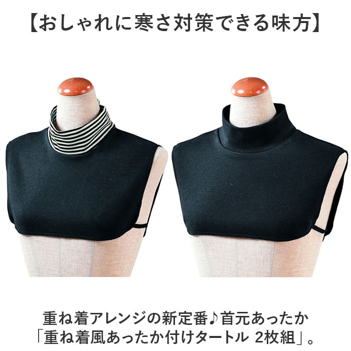 ・重ね着アレンジの新定番♪首元あったか「重ね着風あったか付けタートル 2枚組」。