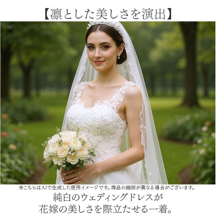 ・純白のウェディングドレスが花嫁の美しさを際立たせる一着。