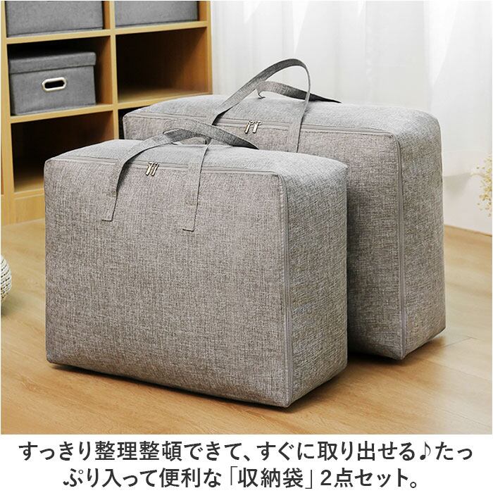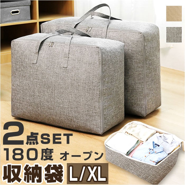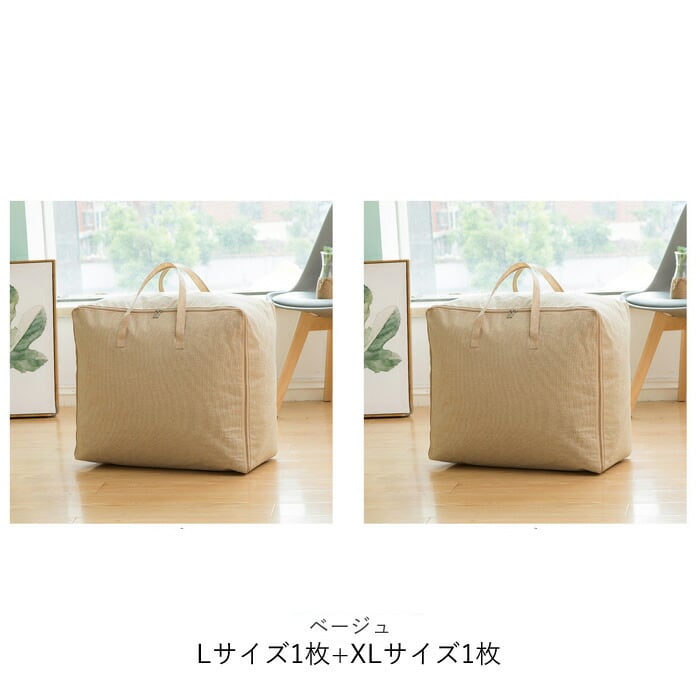 ・衣類やタオルケット、薄手の掛け布団などが入るLサイズ、厚手の毛布や羽毛布団などが入るXLサイズをご用意。Lサイズ2枚or2サイズ1枚ずつのセット。