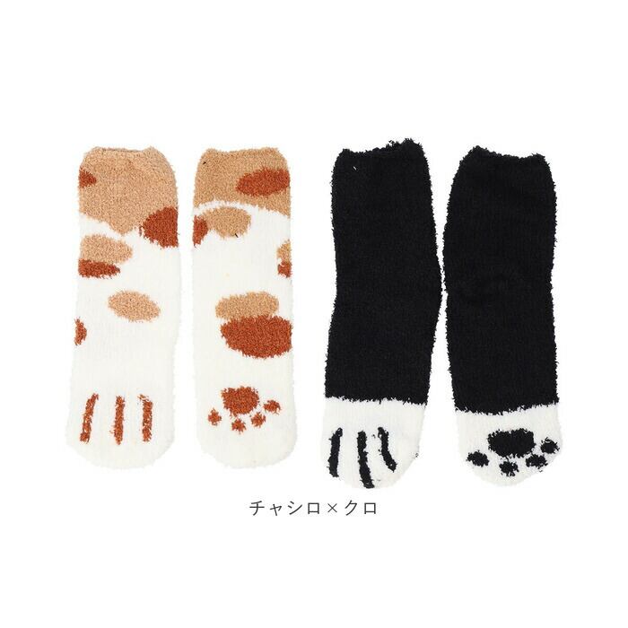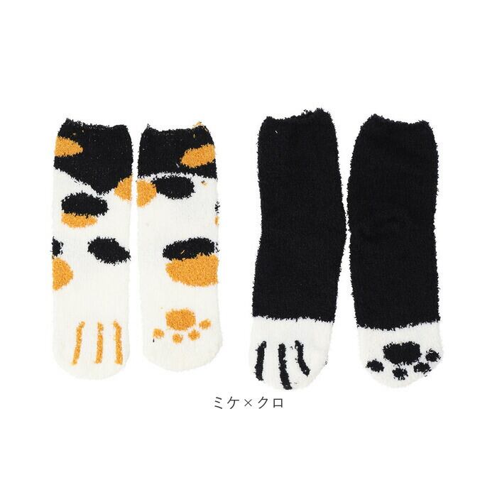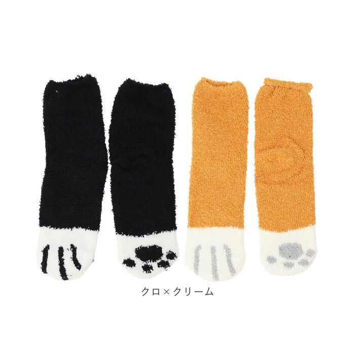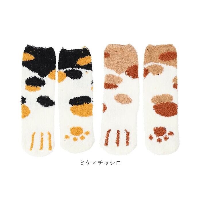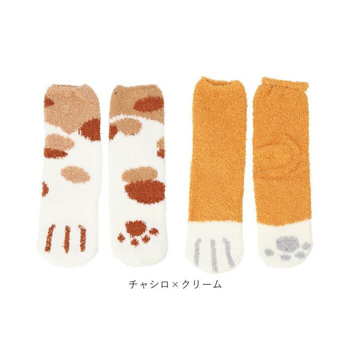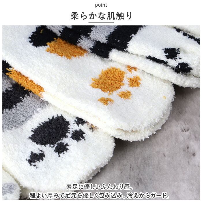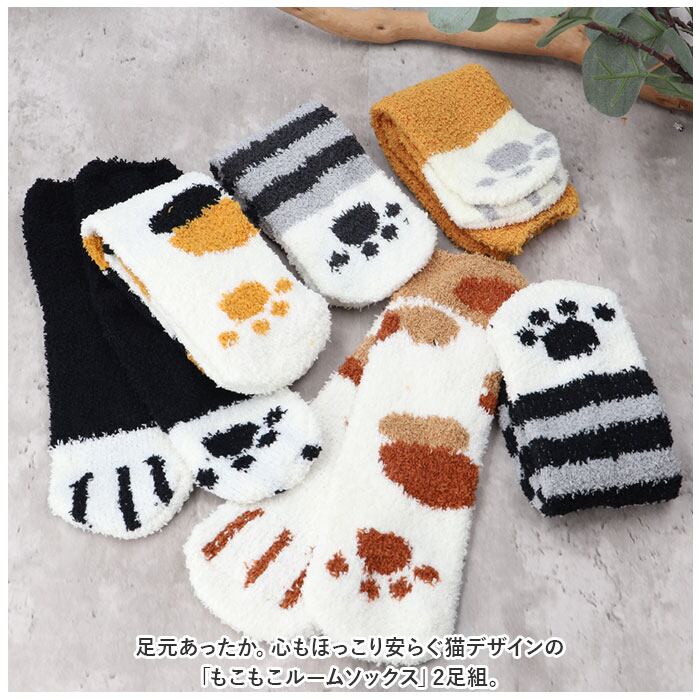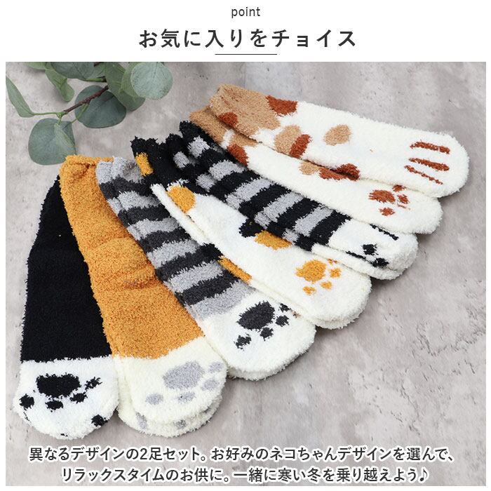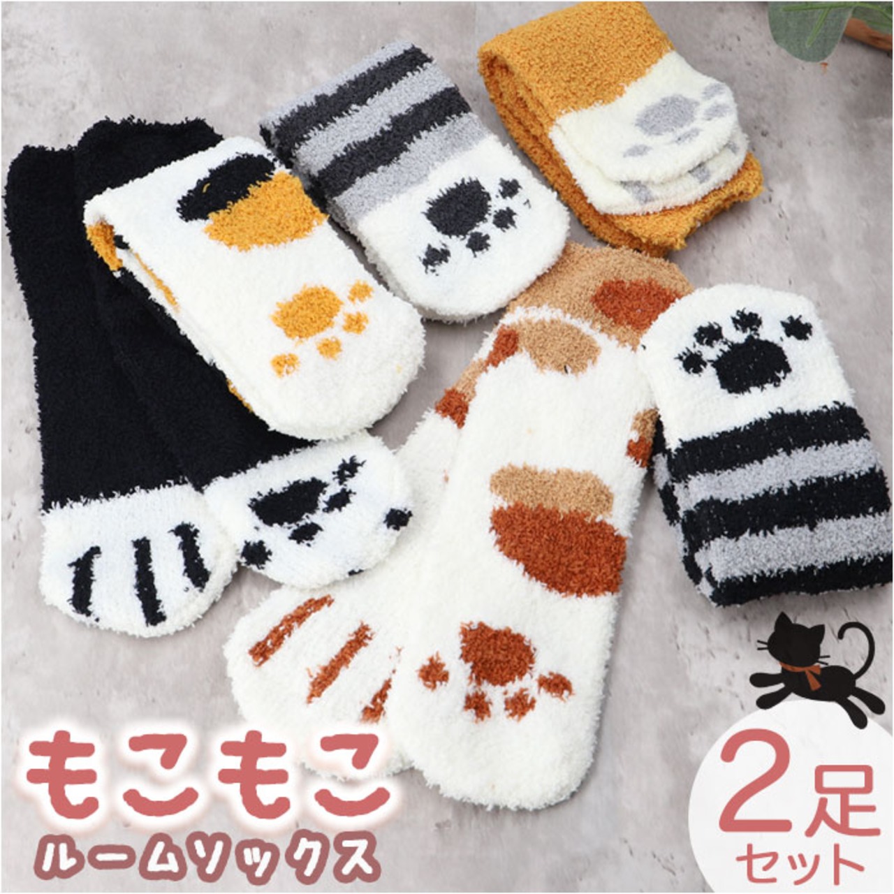 ルームソックス もこもこ 2足組 通販 靴下 くつ下 フットウェア ソックス あたたかい レッグウェア 2足 マショマロタッチ 優しい肌ざわり 室内履き かわいい 柔らかい ふわふわ ぽかぽか 防寒 ネコ足柄 レディース