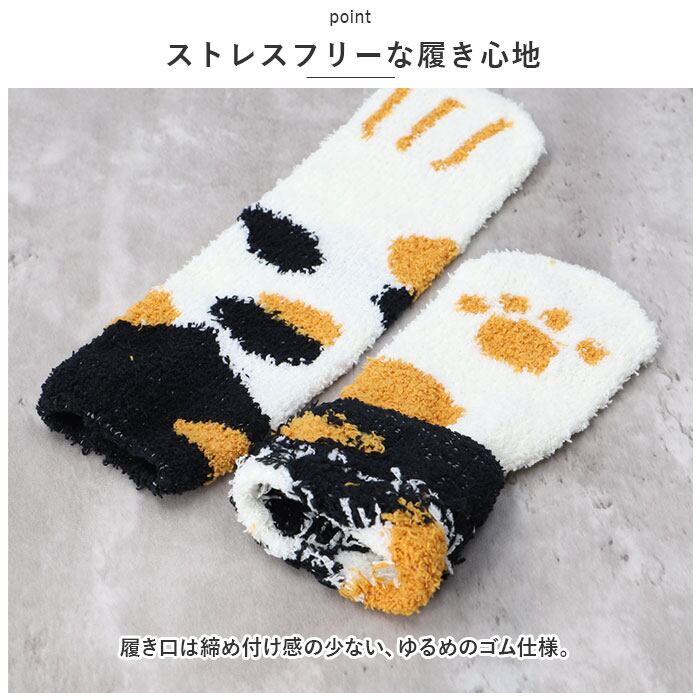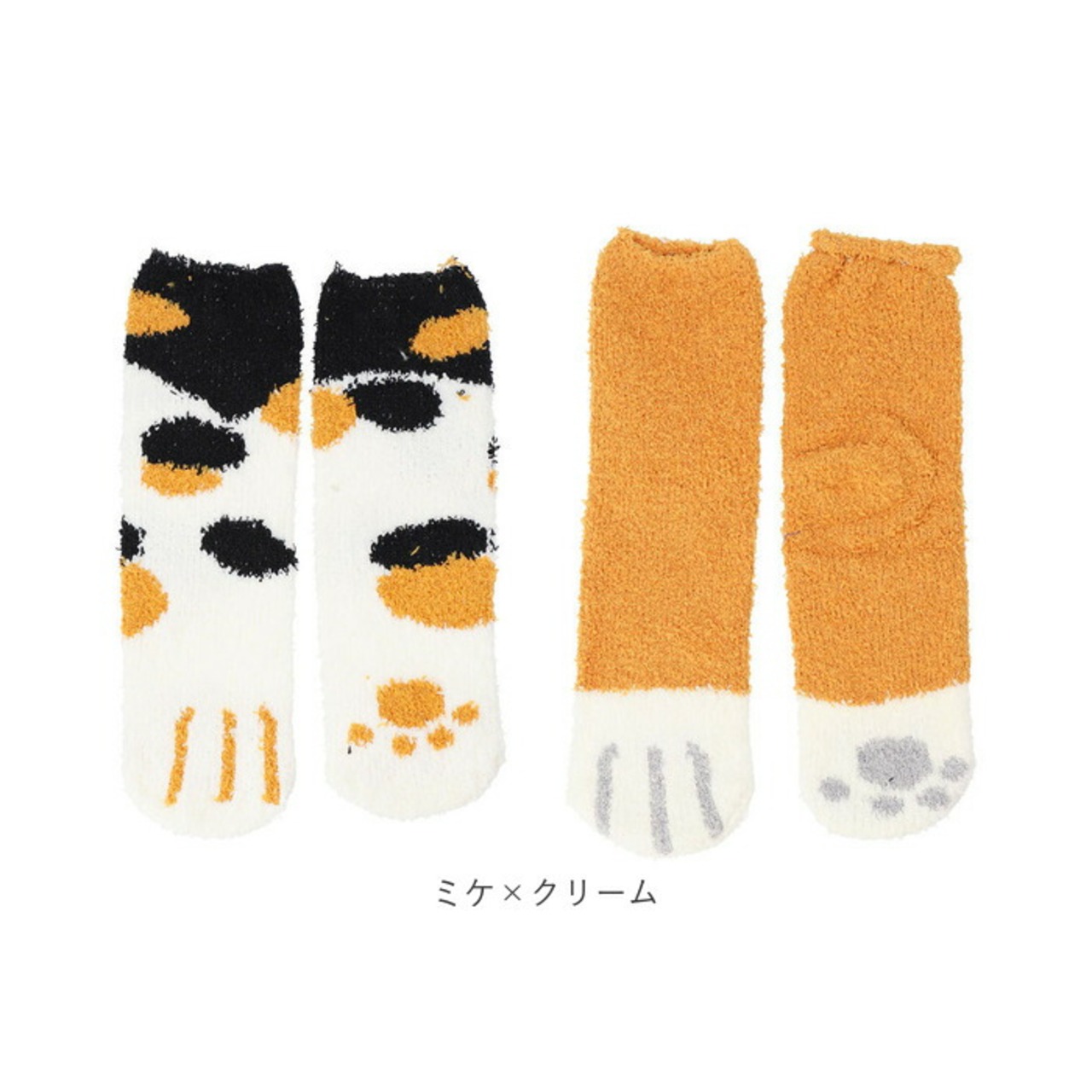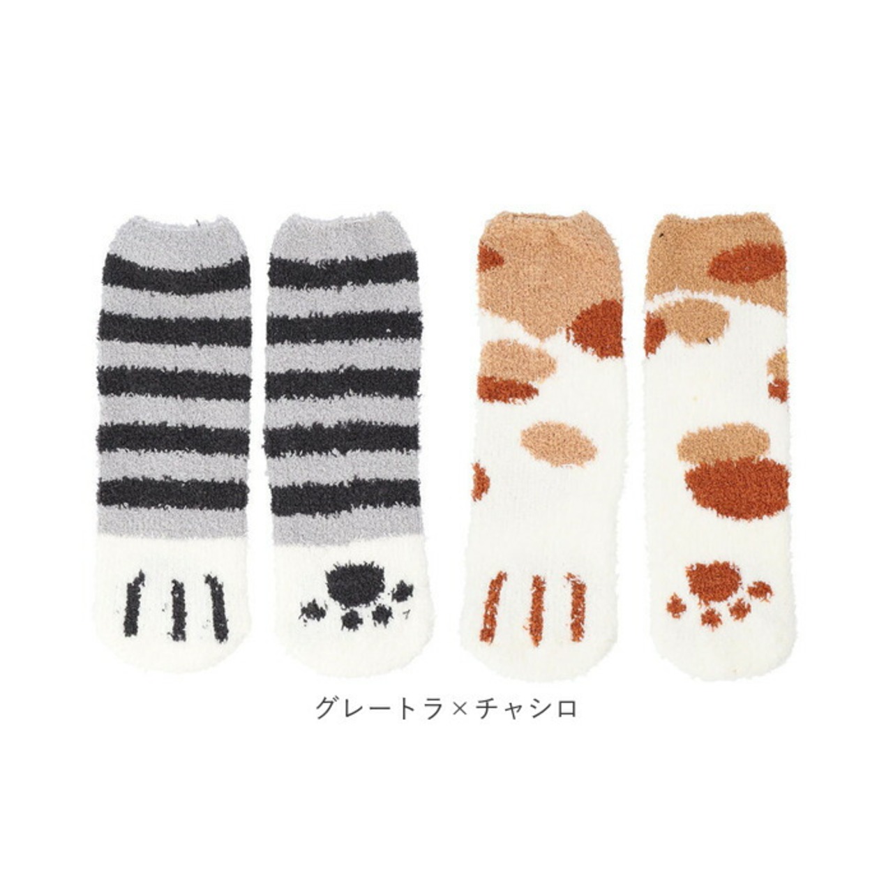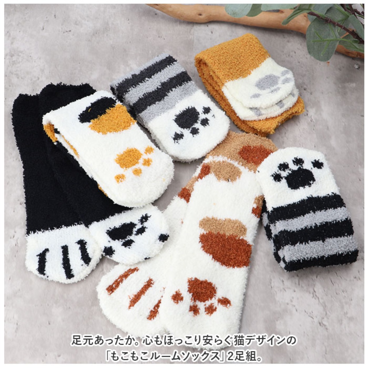 ・足元あったか。心もほっこり安らぐ猫デザインの「もこもこルームソックス」2足組。