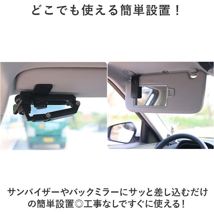 ・サンバイザーやバックミラーにサッと差し込むだけの簡単設置◎工事なしですぐに使える!