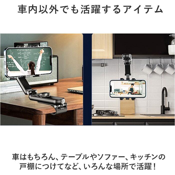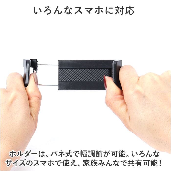 ・ホルダーは、バネ式で幅調節が可能。いろんなサイズのスマホで使え、家族みんなで共有可能!