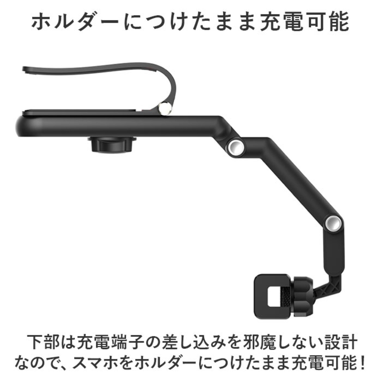 ・下部は充電端子の差し込みを邪魔しない設計なので、スマホをホルダーにつけたまま充電可能!