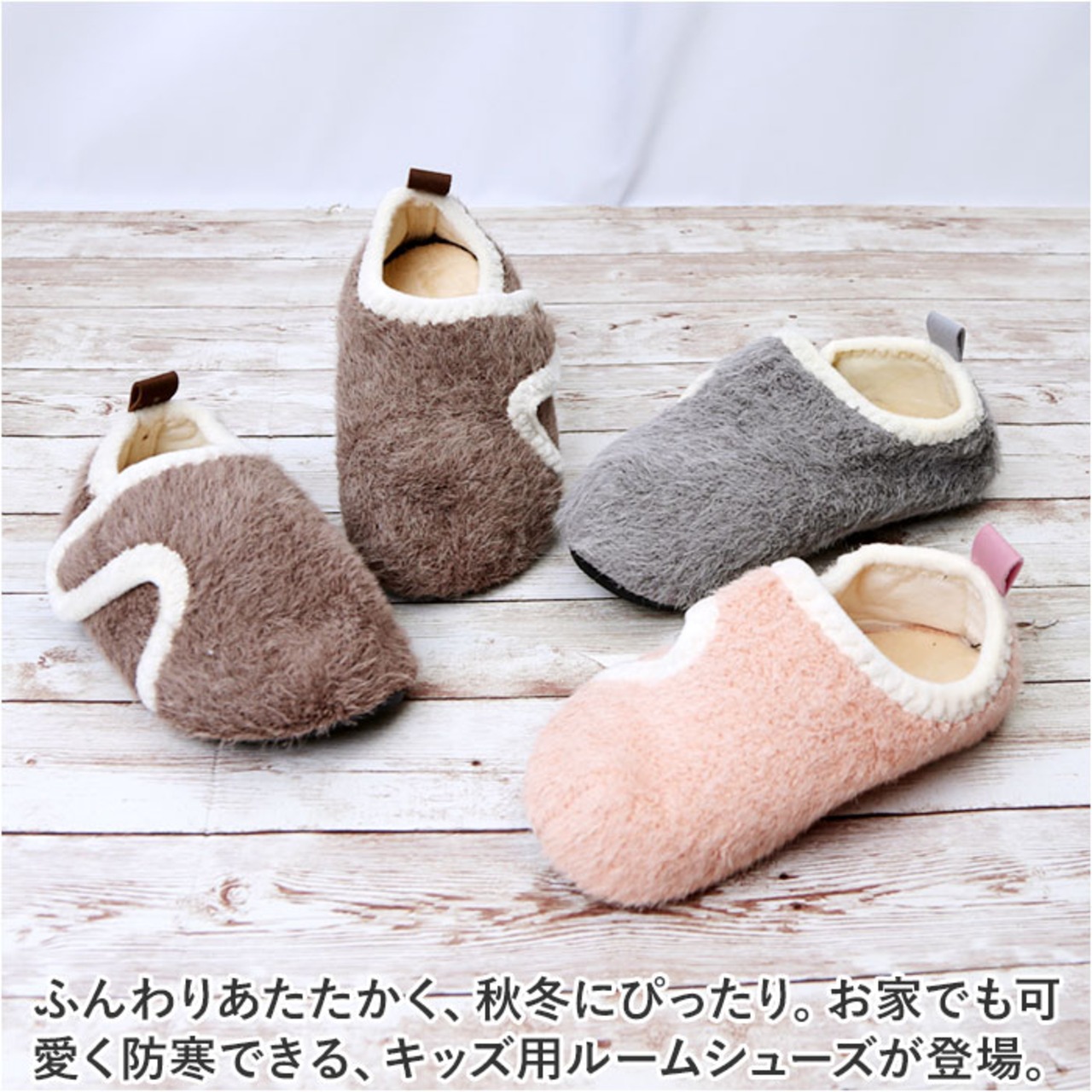 ・ふんわりあたたかく、秋冬にぴったり。お家でも可愛く防寒できる、キッズ用ルームシューズが登場。