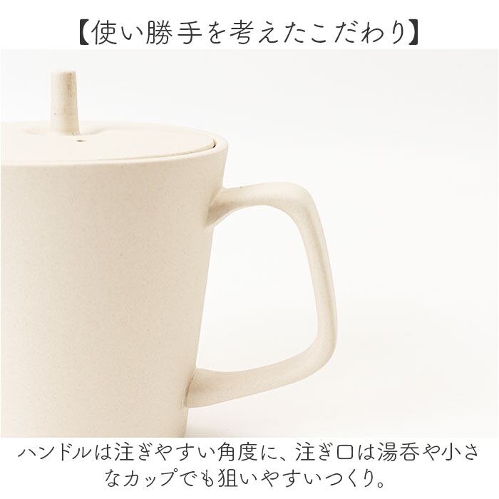 ・ハンドルは注ぎやすい角度に、注ぎ口は湯呑や小さなカップでも狙いやすいつくり。