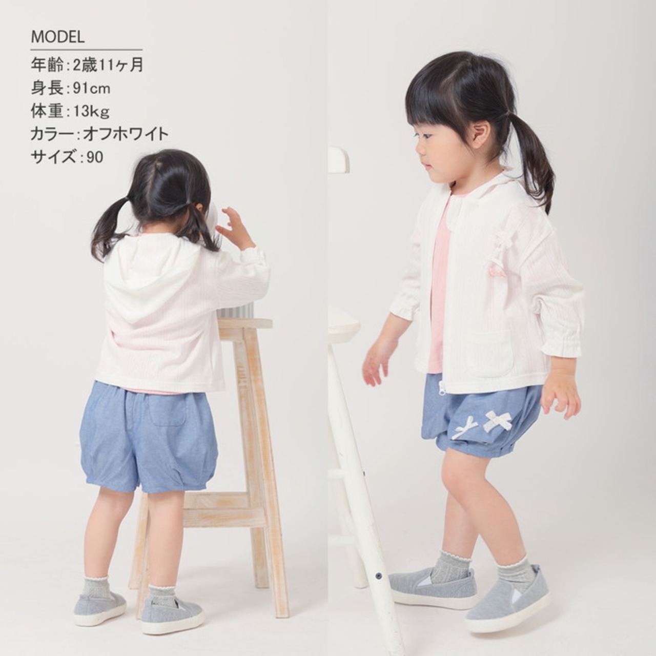 90サイズ (身巾: 35cm / 総丈: 37cm / 肩巾: 33cm / 袖丈: 23.5cm)