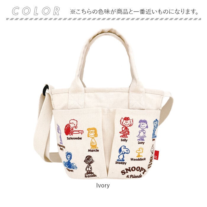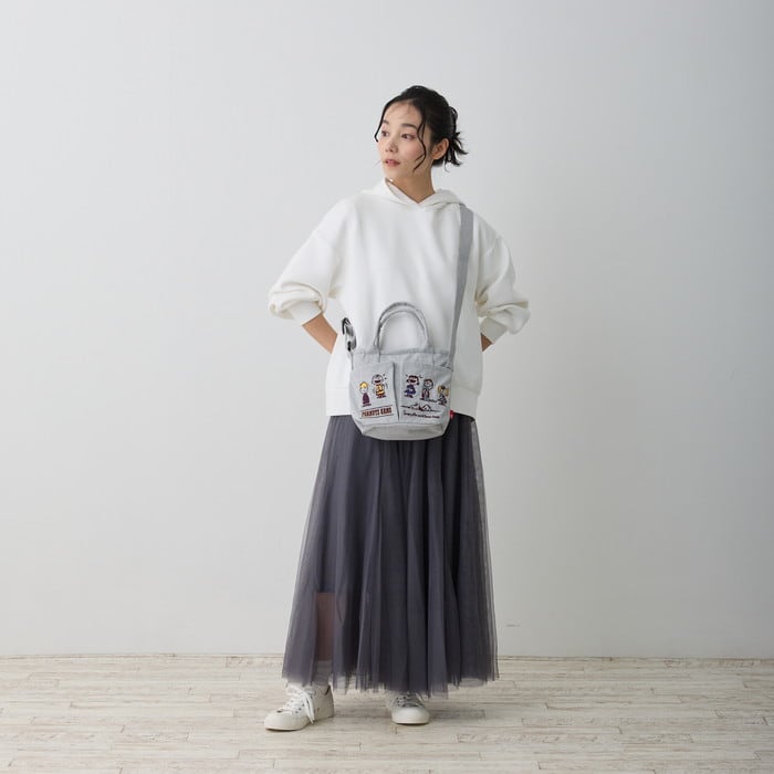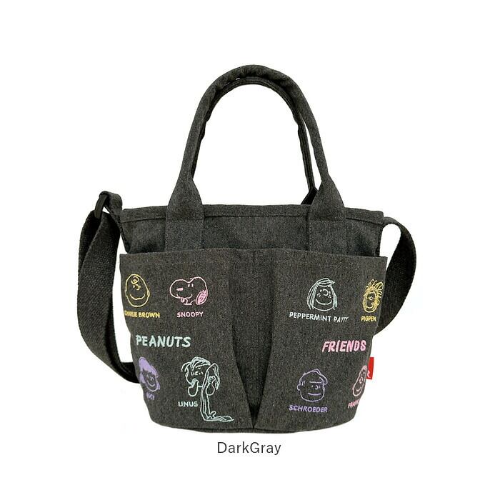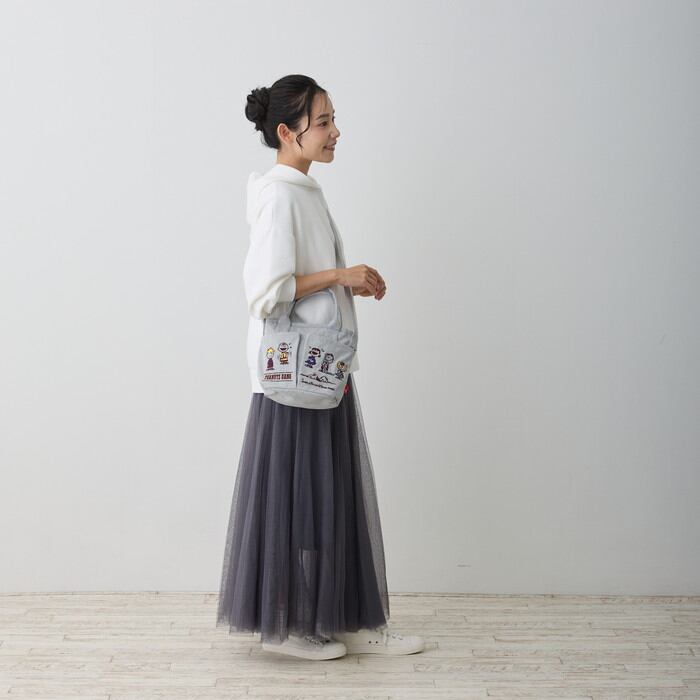 ・スヌーピー&フレンズの刺繍がキュートなバケツ型トート。