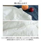 ・コットン使用の生地なので、お肌に優しいふんわりとした着心地を実現。通気性も優れているので、ロングシーズン着用OK。