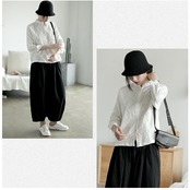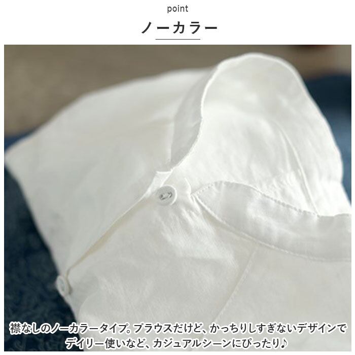 ・襟なしのノーカラータイプ。ブラウスだけど、かっちりしすぎないデザインでデイリー使いなど、カジュアルシーンにぴったり♪