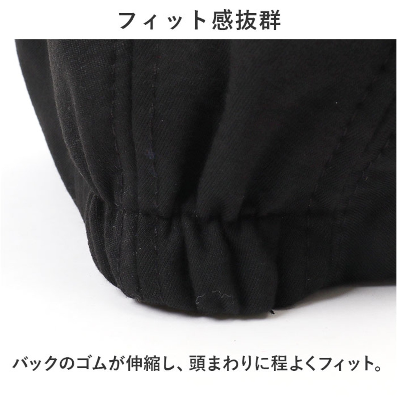 ・バックのゴムが伸縮し、頭まわりに程よくフィット。