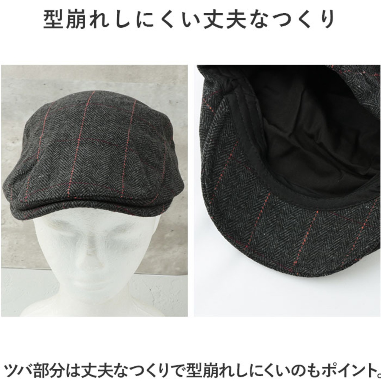 ・ツバ部分は丈夫なつくりで型崩れしにくいのもポイント。