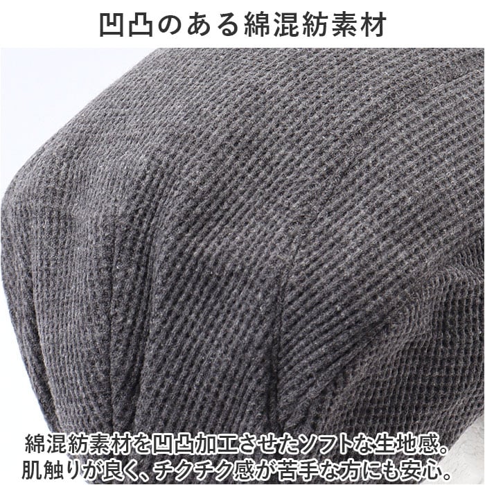 ・綿混紡素材を凹凸加工させたソフトな生地感。肌触りが良く、チクチク感が苦手な方にも安心。