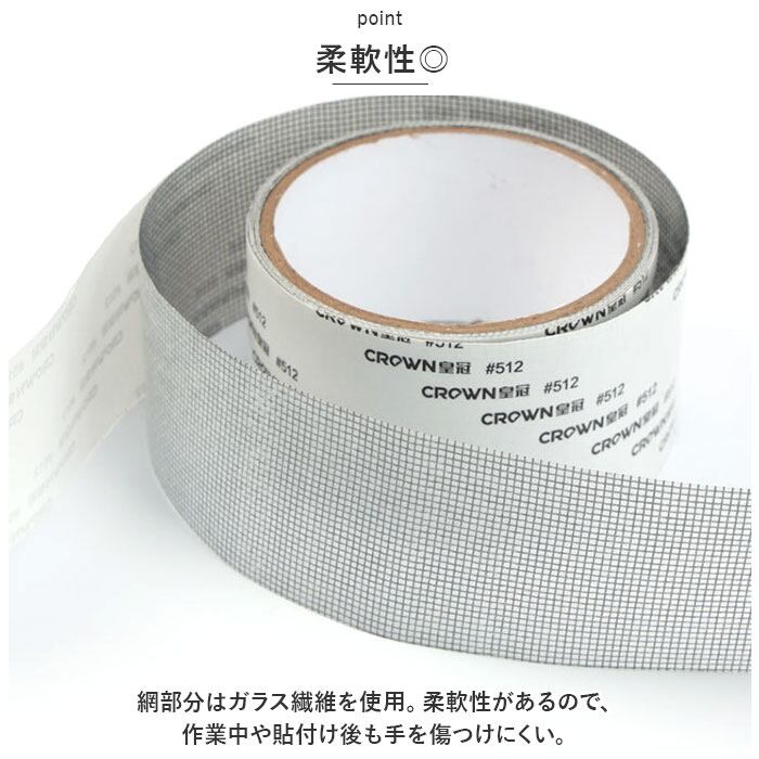 ・網部分はガラス繊維を使用。柔軟性があるので、作業中や貼付け後も手を傷つけにくい。