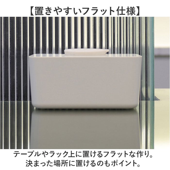 ・テーブルやラック上に置けるフラットな作り。決まった場所に置けるのもポイント。