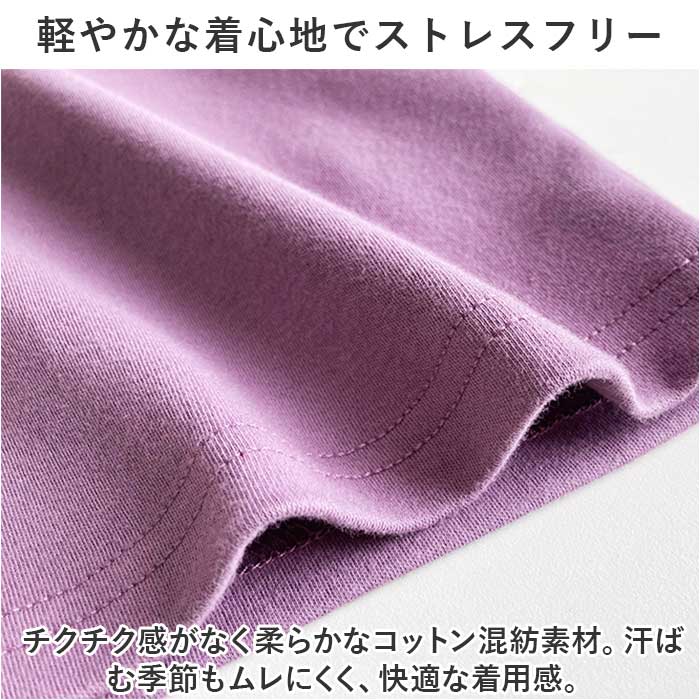 ・チクチク感がなく柔らかなコットン混紡素材。汗ばむ季節もムレにくく、快適な着用感。