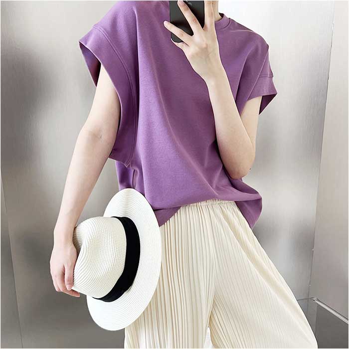 ・大きめのカットが印象的な腕周り。気になる部分をふんわりカバーしつつ、ブラなどが見えにくいつくり。