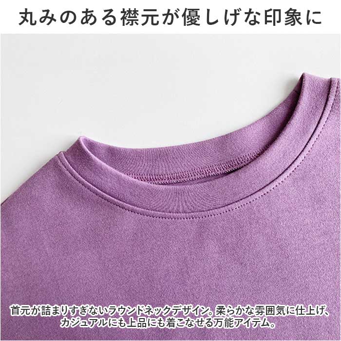 ・首元が詰まりすぎないラウンドネックデザイン。柔らかな雰囲気に仕上げ、カジュアルにも上品にも着こなせる万能アイテム。