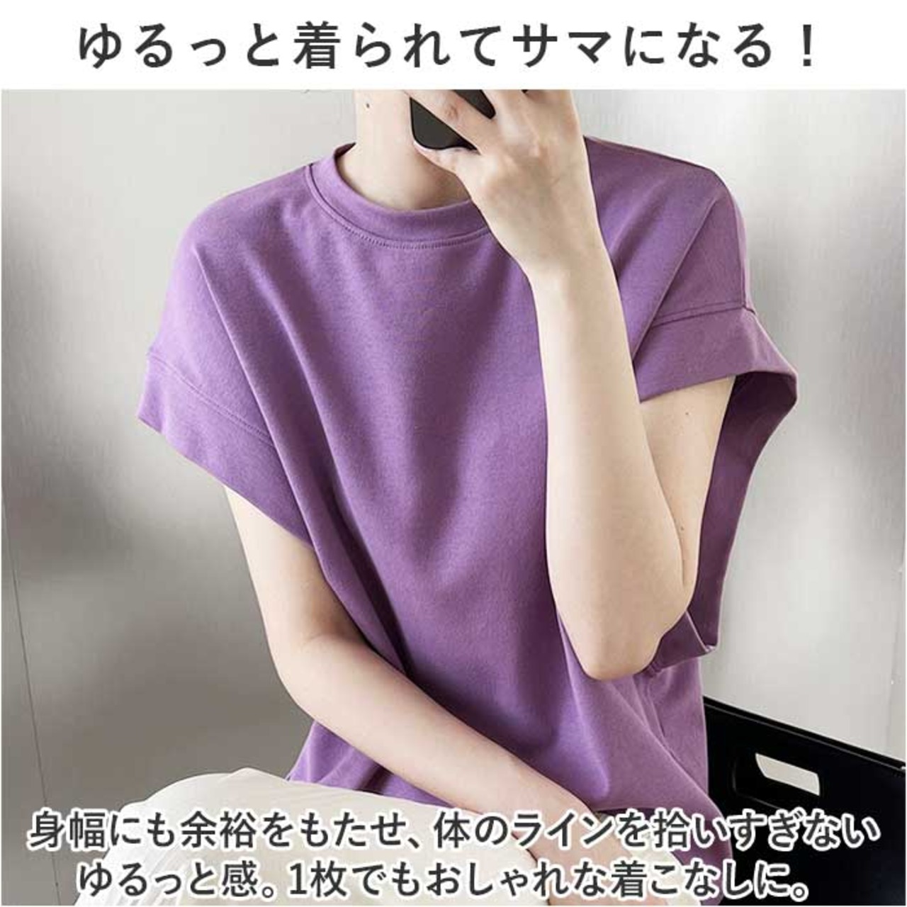 ・身幅にも余裕をもたせ、体のラインを拾いすぎないゆるっと感。1枚でもおしゃれな着こなしに。