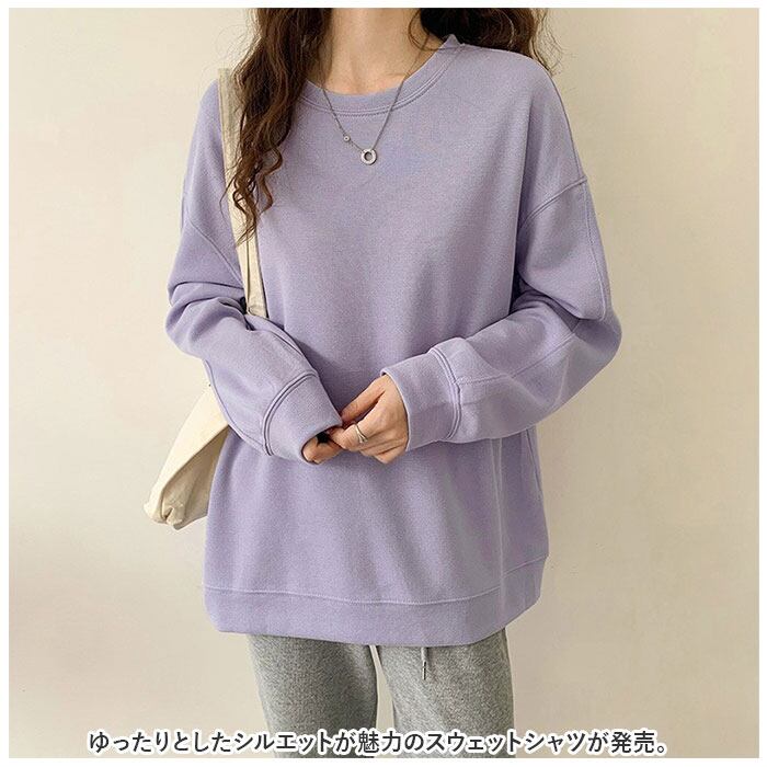 トレーナー レディース 通販 スウェット スエット シャツ プルオーバー トップス 無地 シンプル 長袖 ゆったり 大きめ オーバーサイズ ドロップショルダー デイリー 普段着 カジュアル 体型カバー かわいい カワイイ おしゃれ オシャレ ルーズ ゆるっと 柔らかい やわらかい