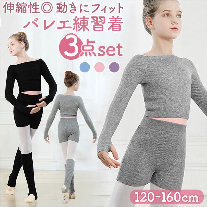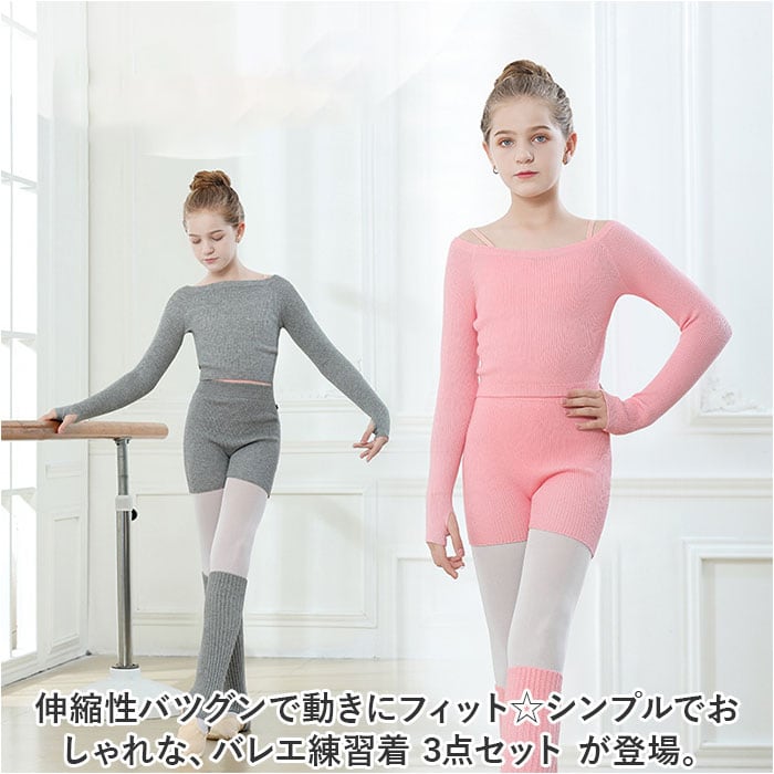 ・伸縮性バツグンで動きにフィット☆シンプルでおしゃれな、バレエ練習着 3点セット が登場。