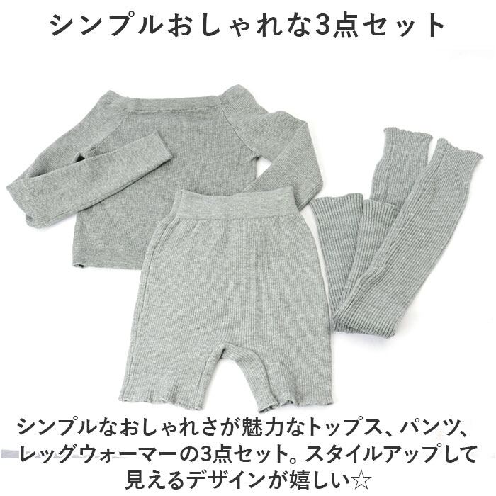・シンプルなおしゃれさが魅力なトップス、パンツ、レッグウォーマーの3点セット。スタイルアップして見えるデザインが嬉しい☆