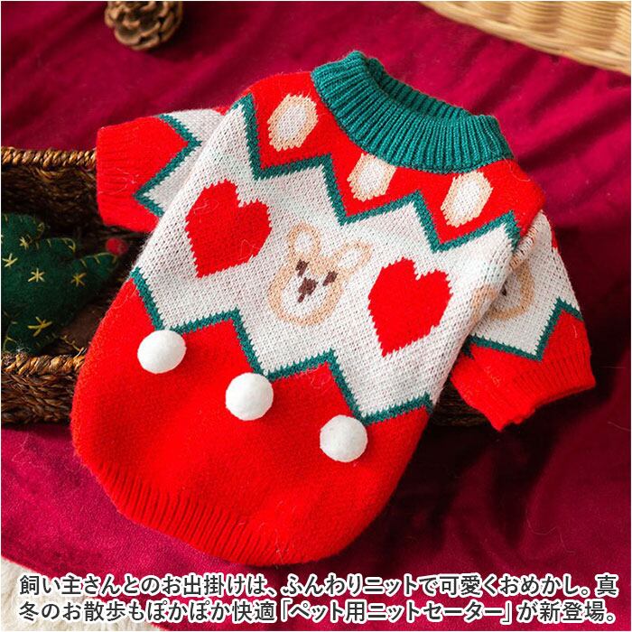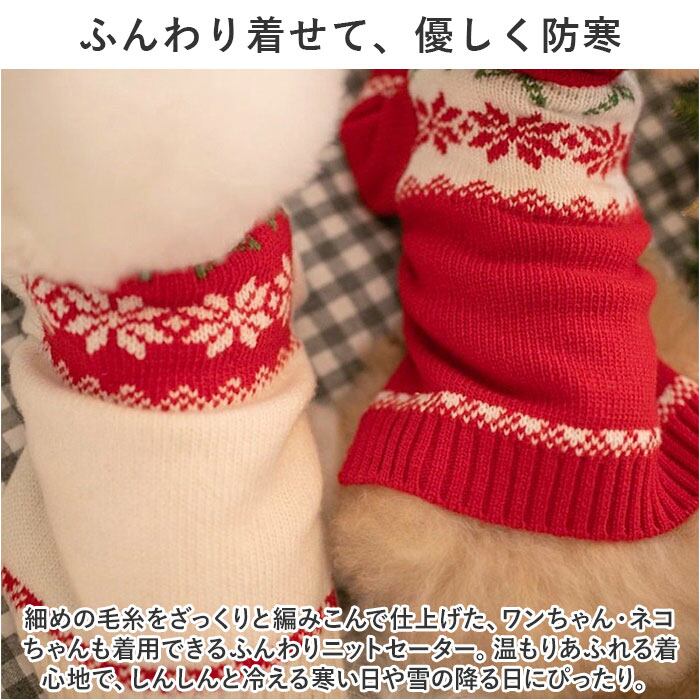 ・細めの毛糸をざっくりと編みこんで仕上げた、ワンちゃん・ネコちゃんも着用できるふんわりニットセーター。温もりあふれる着心地で、しんしんと冷える寒い日や雪の降る日にぴったり。