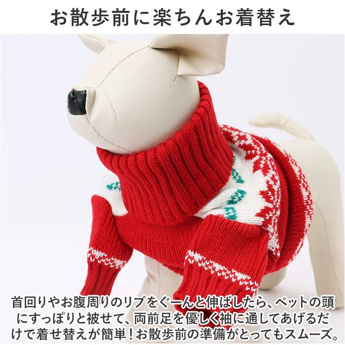 ・首回りや袖口、ウェアの裾は伸縮性のあるリブ生地で仕上げてあるため、ワンちゃんの身体のラインにぴったりフィット。スキマ風をシャットアウトして、毛糸が包みこんだ暖かな空気をキープ。