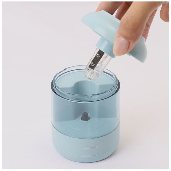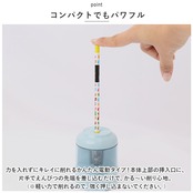 ・力を入れずにキレイに削れるかんたん電動タイプ!本体上部の挿入口に、片手でえんぴつの先端を差し込むだけで、かる-い削り心地。(※軽い力で削れるので、強く押し込まないでください。)