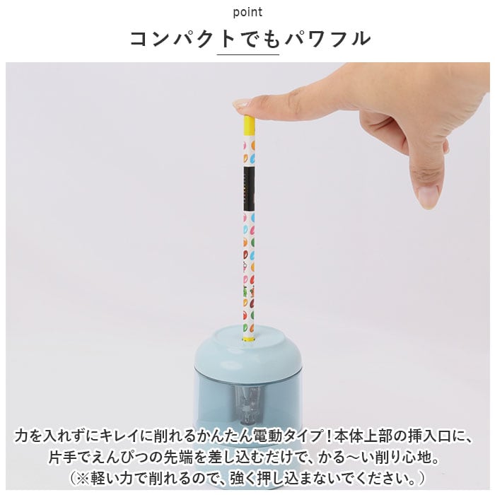 ・コロンと可愛い手のひらサイズ。大人から子どもまで、みんなで使える「電動えんぴつ削り」が新登場。