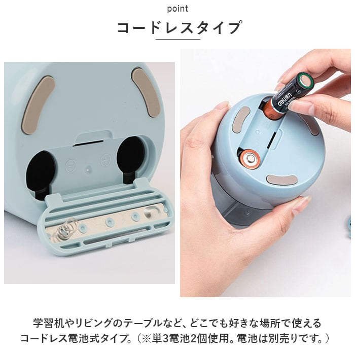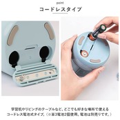 ・学習机やリビングのテーブルなど、どこでも好きな場所で使えるコードレス電池式タイプ。(※単3電池2個使用。電池は別売りです。)