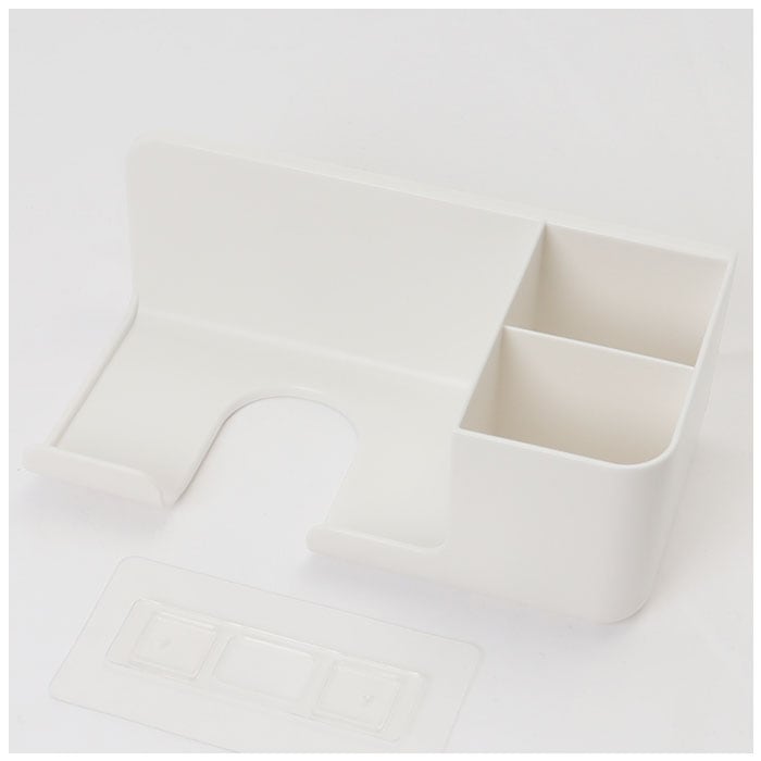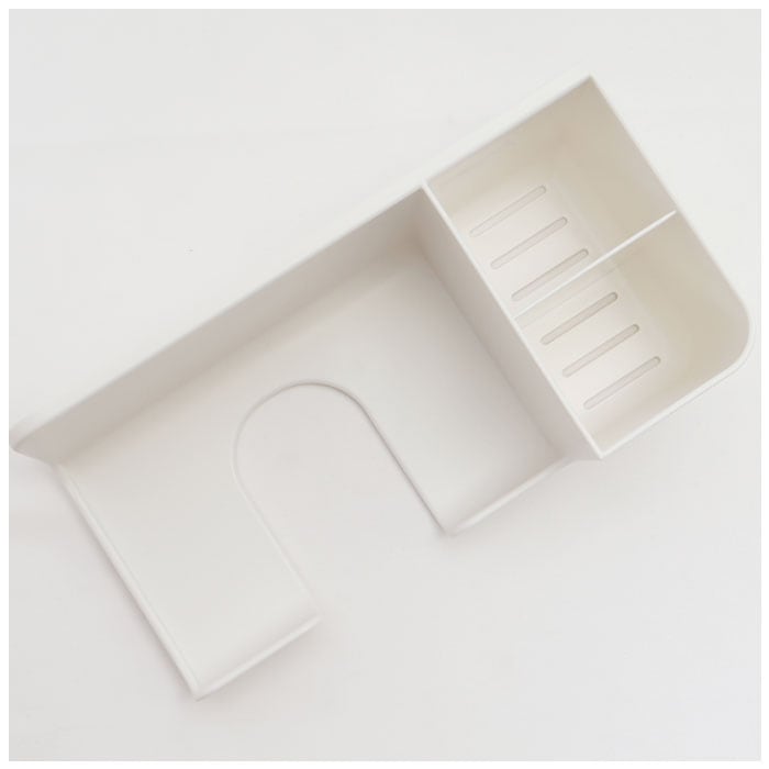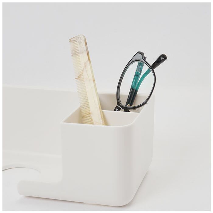 ・大きめのドライヤーを収納可能。仕切り部分にはヘアオイルやヘアブラシを収納できる!底部は穴あき設計で水が溜まらない工夫も◎