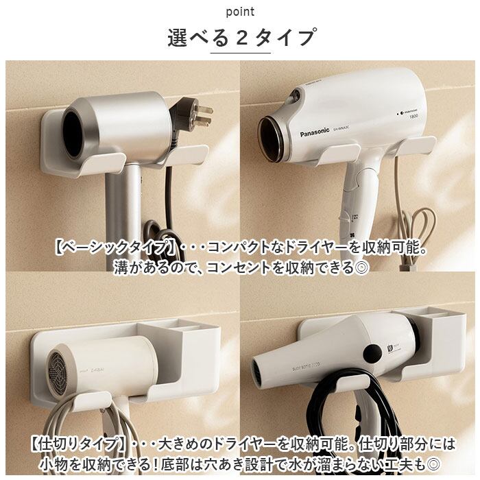 ・ベーシックタイプと仕切りタイプの2種類をご用意。ドライヤーの大きさに合わせて選べる。