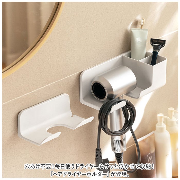 ・穴あけ不要!毎日使うドライヤーをサッと浮かせて収納!「ヘアドライヤーホルダー」が登場。